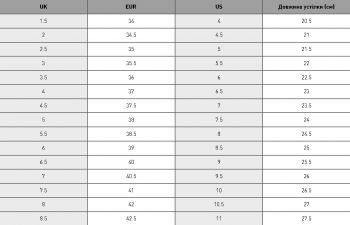 • Довжина стопи, см 14.5