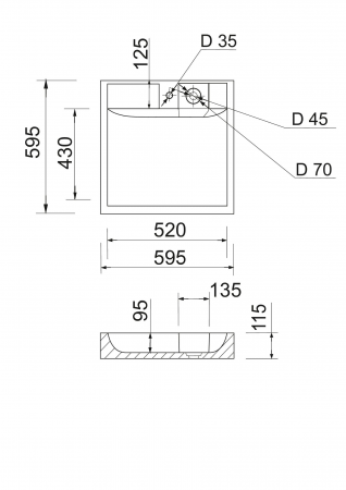 - Форма раковини квадратна